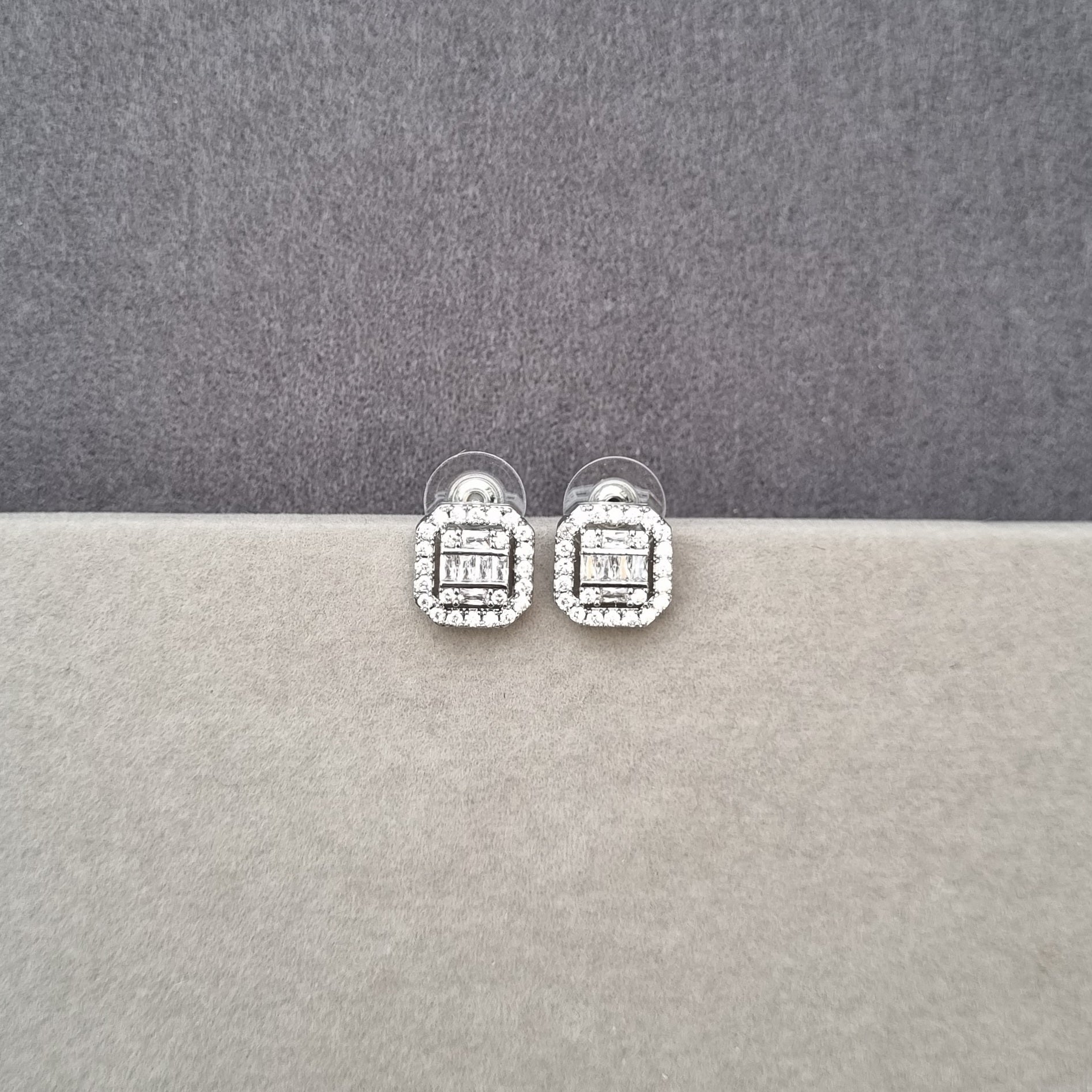 DIAMOND CUT SILVER EAR STUDS E128
